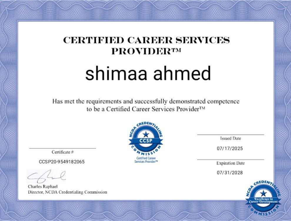 I have delivered workshops and coaching sessions focused on self-awareness, emotional intelligence, decision-making, and the development of soft skills. I am also a Certified Career Counselor by the National Career Development Association (NCDA), and I am passionate about helping others build confidence, overcome confusion, and take clear steps toward their future.